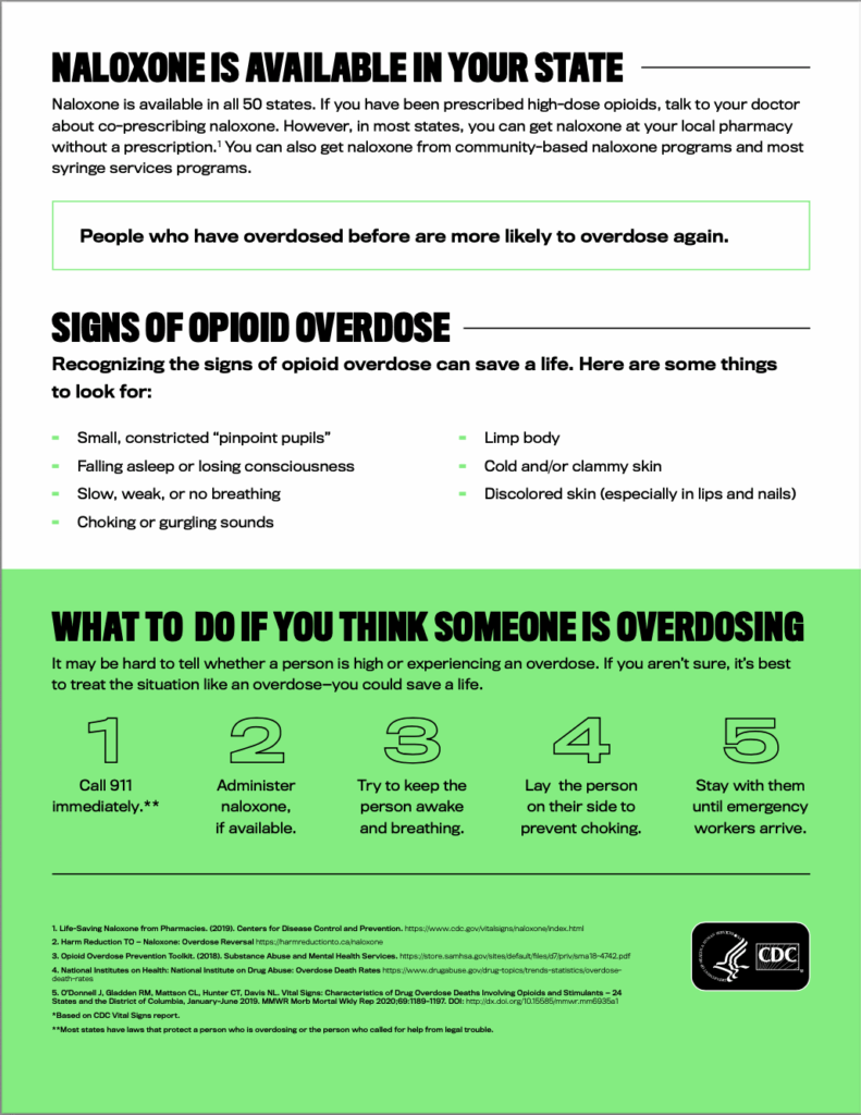 - To learn more about the signs of an overdose, click here